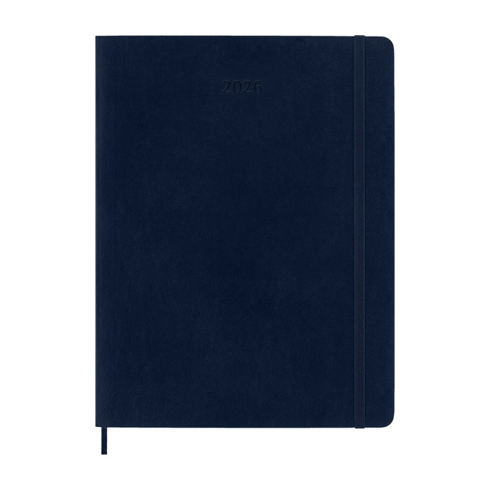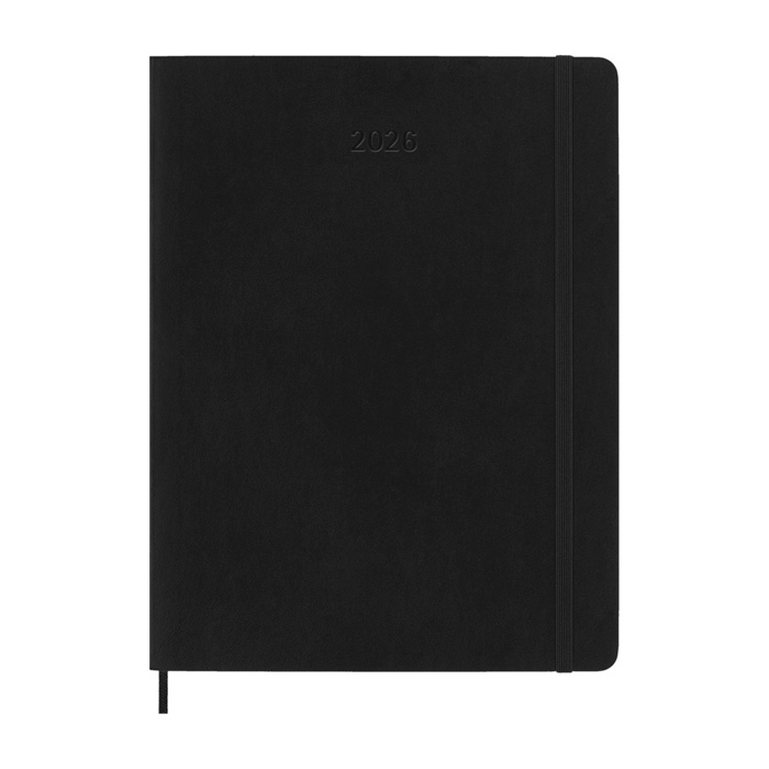 Agenda semanal de capa mole com planeamento de 12 meses, de janeiro a dezembro de 2026, pensada para manter o controlo de projetos e reuniões. Apresenta a semana completa numa página e, na oposta, um espaço amplo para notas e acompanhamento. Inclui vistas anual e mensal, além de páginas de planeamento para organizar objetivos e tarefas. Papel cor de marfim sem ácido, fecho elástico, fita marcador de página e bolso interior extensível para documentos. Traz ordem ao escritório, a eventos e a ações internas de RH.
