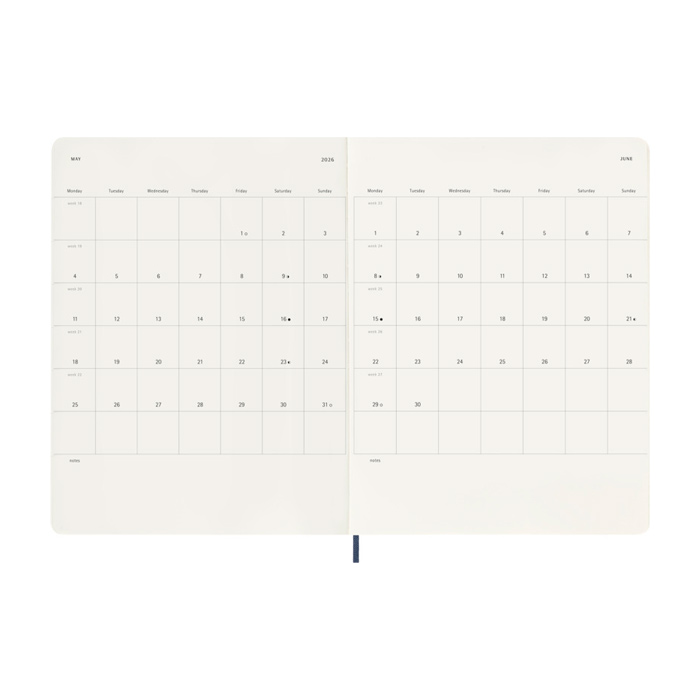 - Agenda semanal Moleskine com vista semanal e página de notas