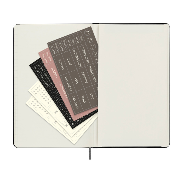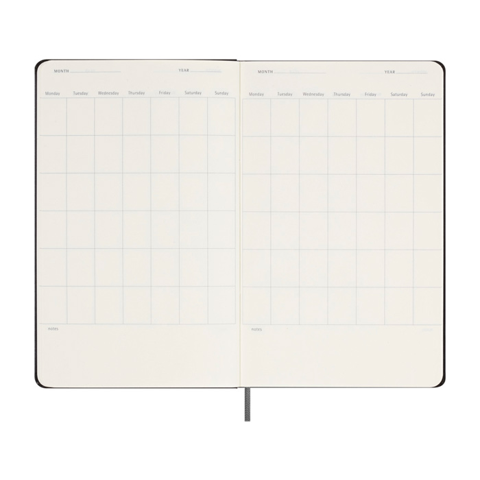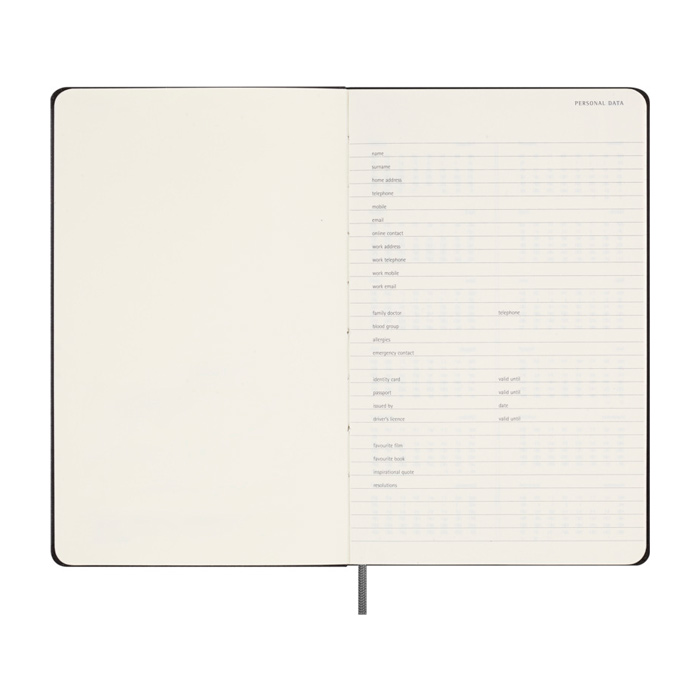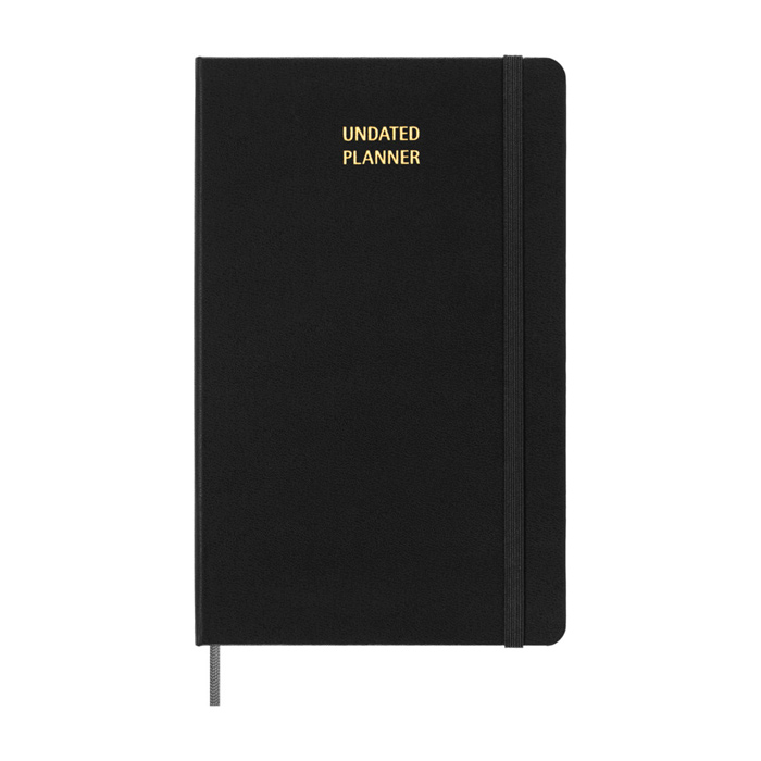 A agenda semanal sem data com capa dura Moleskine pode ser iniciada em qualquer momento do ano. É uma excelente opção para quem procura uma ferramenta de planeamento versátil e duradoura. Os espaços para meses, semanas e dias estão em branco, pelo que oferecem mais flexibilidade e liberdade do que uma agenda com datas. Ao preencher as datas pessoalmente, poderá saltar os períodos em branco e utilizar apenas as páginas de que necessita. Com 12 separadores mensais personalizáveis, cinco semanas sem data por mês, fecho elástico e marcador de fita a condizer, papel marfim sem ácidos de 70 g/m2 e bolso interior expansível.