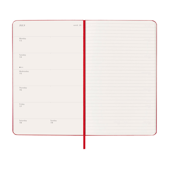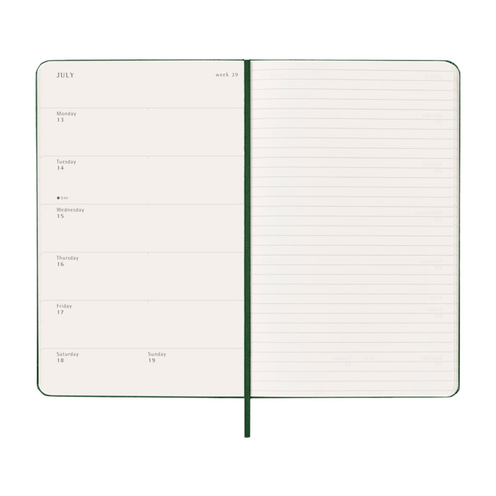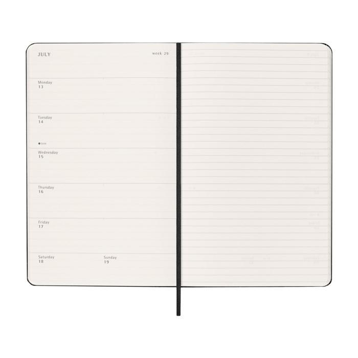 - Agenda semanal Moleskine com semana à vista e página de notas oposta