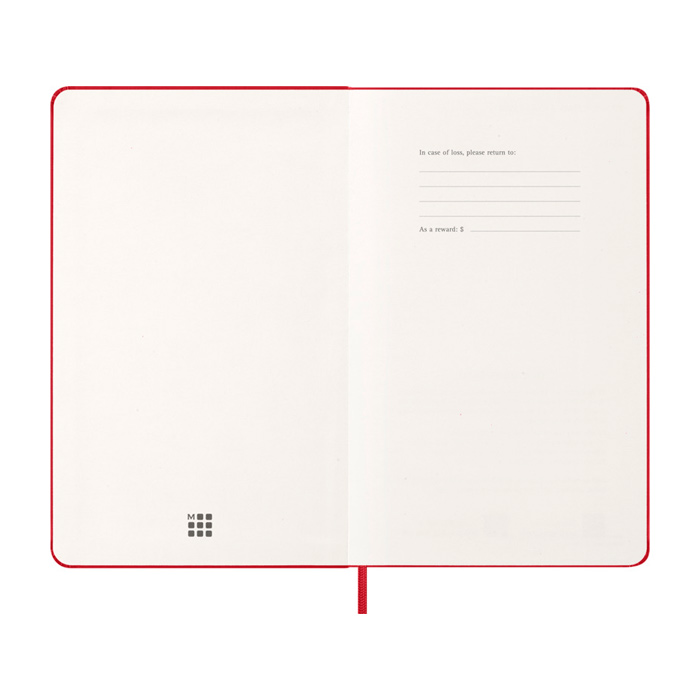 - Capa dura com fecho elástico, fita marcadora e bolso interior
