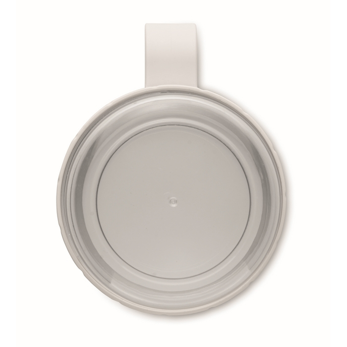 Caneca de pequeno-almoço ou brunch para levar em embalagem de PP e tampa de PS. Contém 2 recipientes individuais para manter os ingredientes separados. Capacidade: 450 ml e 160 ml. Antifugas.