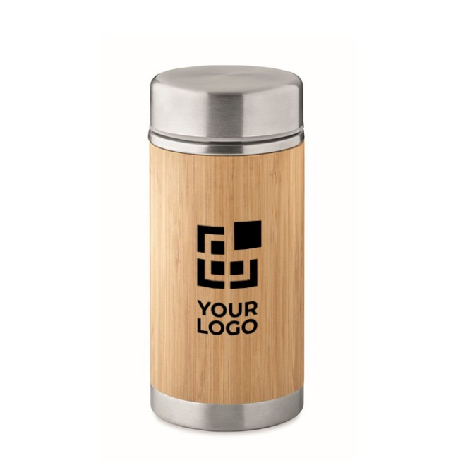 Para guardar ou transportar a comida a qualquer parte apresentamos esta prática lancheira personalizável de dupla parede feita em aço e com tampa de rosca.