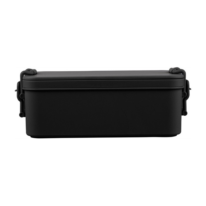 Lancheira de plástico com duas camadas, fecho de clipe e tampa a condizer, pensada para organizar refeições no trabalho ou deslocações. O compartimento inferior, de maior tamanho, combina-se com a bandeja superior mais pequena que se empilha para reduzir o volume no transporte e armazenamento. A camada intermédia inclui um conjunto de 3 talheres para consumir as refeições fora do escritório sem acessórios extra. Capacidade total de 2200 ml e entrega a granel, adequada para ações internas e eventos corporativos.