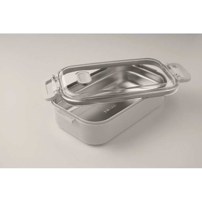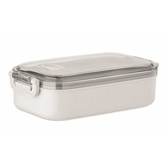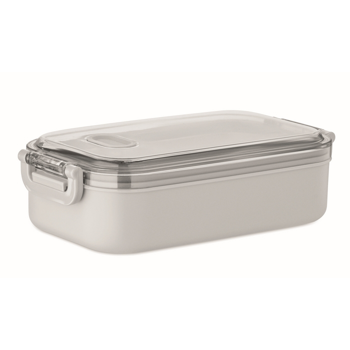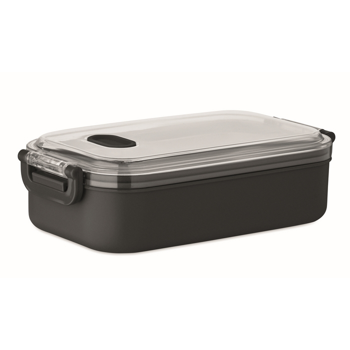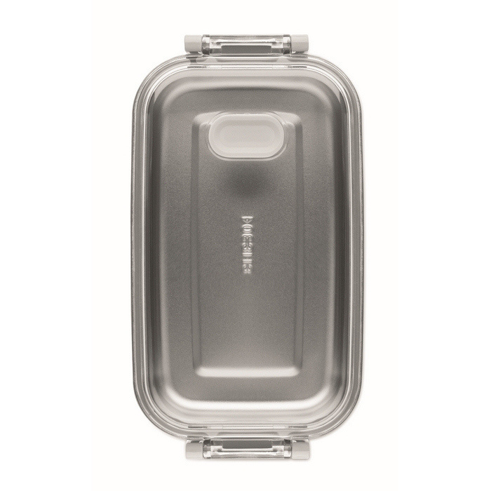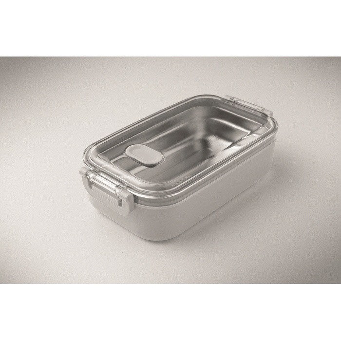 Lancheira de plástico com camada interior adicional de aço inoxidável reciclado, pensada para transportar comida de forma prática no dia a dia. Inclui tampa hermética de AS que ajuda a manter os alimentos frescos e seguros durante a deslocação. Oferece 750 ml de capacidade. Escolha adequada para refeitórios da empresa, packs de boas-vindas ou ações internas de marca.