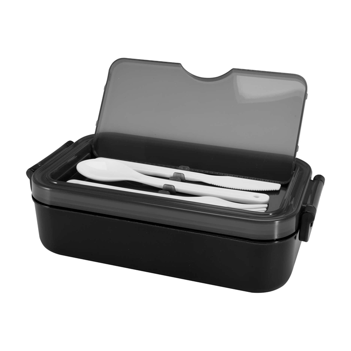 Lancheira de plástico com talheres a condizer e compartimento amplo