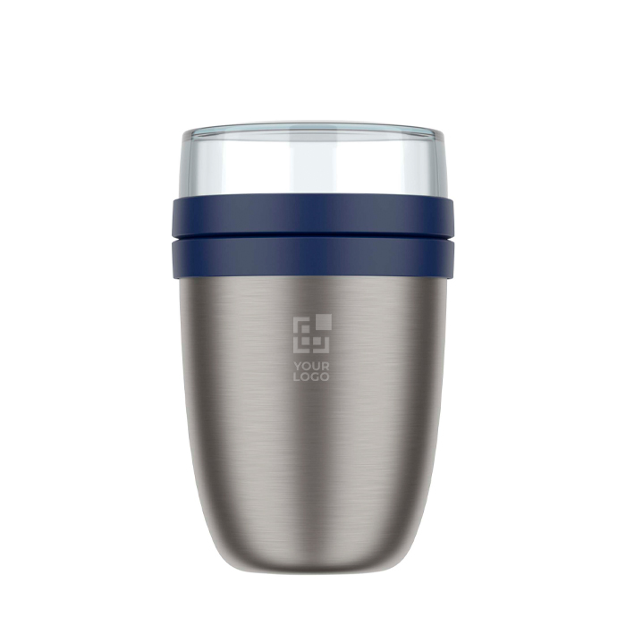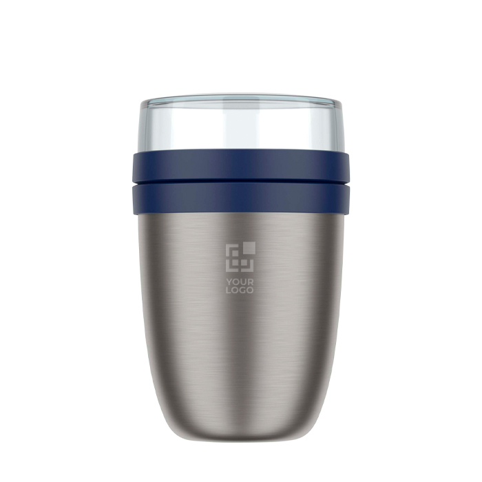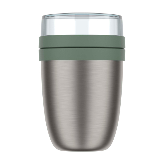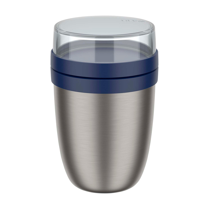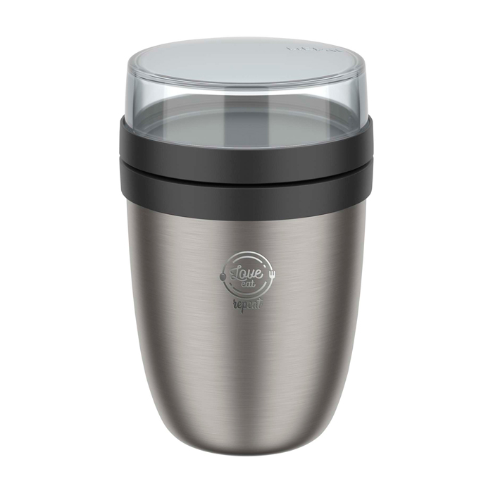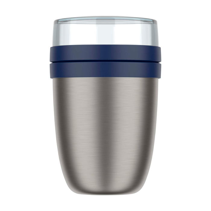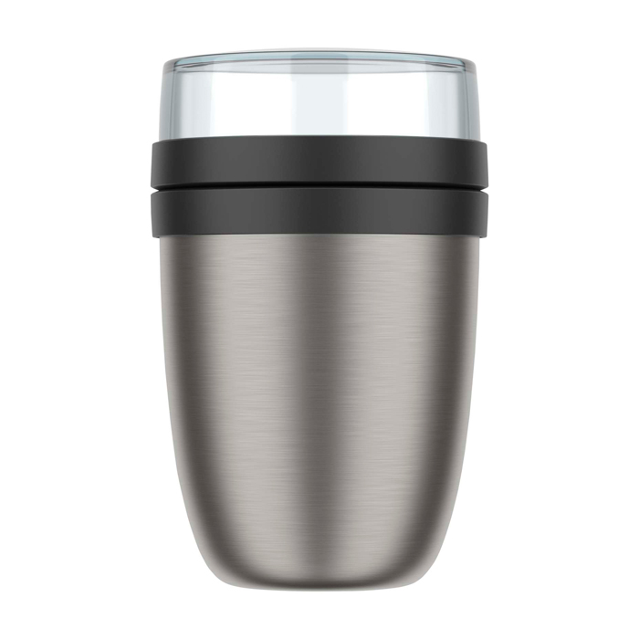 Lancheira com isolamento que incorpora dois compartimentos para manter os ingredientes separados até à altura de os consumir. Cada recipiente conta com a sua própria tampa, o que evita que os alimentos se misturem. Mantém a comida quente durante 6 a 8 horas e fria até 12 horas. O compartimento superior transparente tem capacidade de 200 ml e o inferior de 500 ml, oferecendo espaço suficiente para uma refeição completa. Fabricada com um material resistente, o exterior permanece sempre frio e seco ao toque. Recomenda-se a lavagem à mão, apesar de as partes de plástico da tampa poderem ser lavadas na lava-louça.