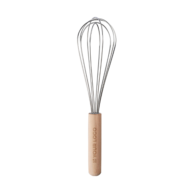 Batedor manual de aço inoxidável com cabo de madeira personalizável