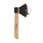 Se procura merchandising publicitário original e que surpreenda, não deixe escapar a oportunidade de oferecer este cortador de pizza em forma de machado.