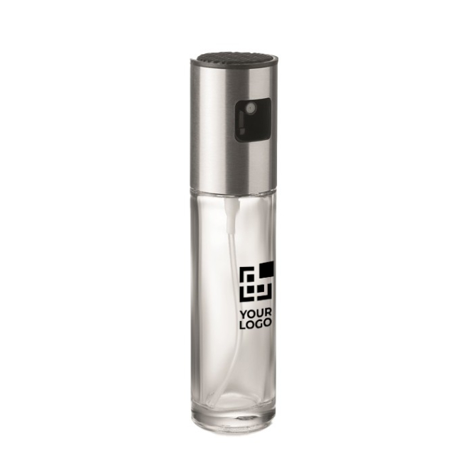 Pulverizador de óleo de vidro com tampa de aço inoxidável. Capacidade: 100 ml.