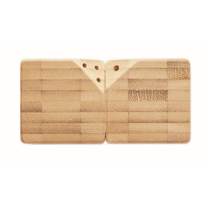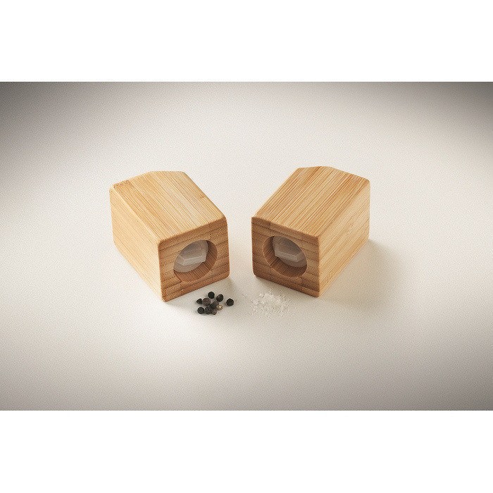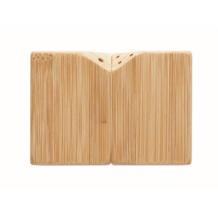 Conjunto de saleiro e pimenteiro de bambu com base de PP e fecho via tampa na parte inferior para recargas rápidas. As duas peças unem-se magneticamente, o que ajuda a mantê-las juntas na cozinha, escritório ou zona de café, sem ocupar espaço extra. O corpo de bambu oferece acabamento natural e fácil de combinar com locais diferentes. Opção prática para incluir em kits de boas-vindas, brindes empresariais ou ações de fidelização.