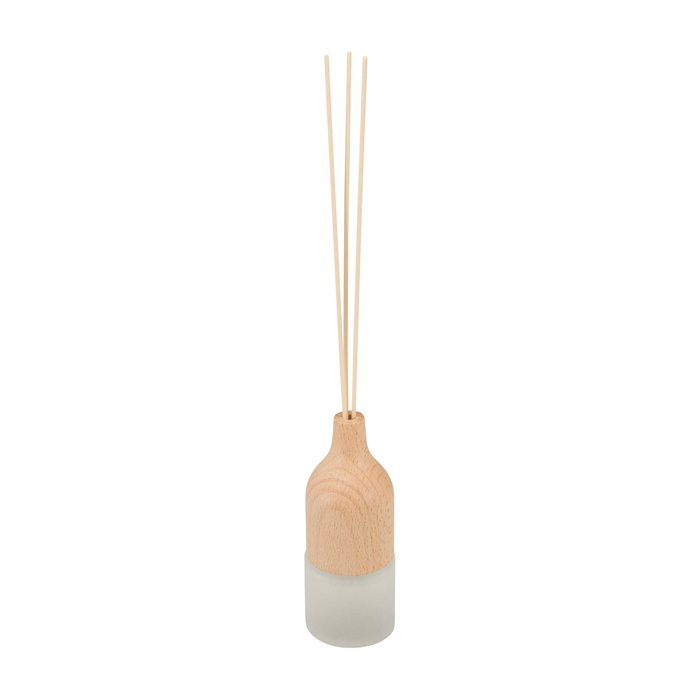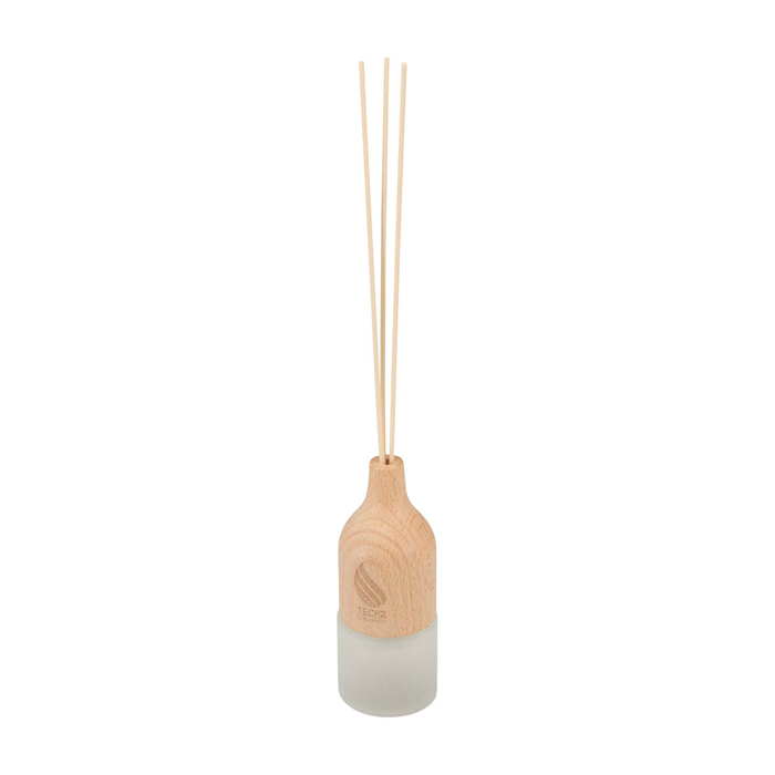 Ambientador com acabamento de efeito madeira e varetas difusoras, apresentado num formato compacto de 30 ml. Inclui fragrância de baunilha para perfumar espaços continuamente sem necessidade de eletricidade e mantém uma sensação de ambiente cuidado em salas de reunião, receções ou gabinetes. O aspecto discreto condiz com diferentes estilos de decoração e ocupa pouco espaço em mesas ou prateleiras. Recomendado como brinde empresarial para ações de boas-vindas, eventos ou inauguração de escritórios.