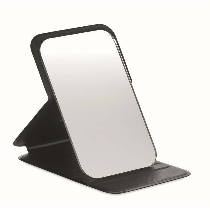 Espelho compacto de PU com estojo dobrável, desenhado para levar na carteira, nécessaire ou kit de viagem. O formato protege a superfície quando não está a ser utilizado e ajuda a mantê-lo limpo no dia a dia. Devido ao seu tamanho e peso reduzidos, é prático para eventos, feiras ou deslocações da equipa. A superfície limpa-se facilmente e o acabamento do estojo exibe uma apresentação cuidada. Pode ser incluído como brinde em packs corporativos ou lembrança em ações de boas-vindas.