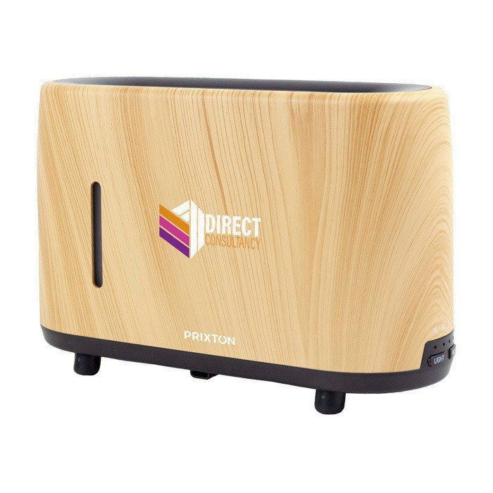 Humidificador de plástico Prixton, desenhado para melhorar o ambiente em casa ou locais de trabalho. Funciona silenciosamente para não incomodar durante o descanso e cria um efeito de luz tipo chama, o qual proporciona iluminação ambiente agradável. Permite adicionar óleos essenciais para aromatizar a divisão e adaptar o ambiente a cada momento. Uso simples e pensado para o cotidiano, quer no quarto como no escritório. Recomendado para ações de bem-estar corporativo e brindes empresariais centrados no cuidado pessoal.