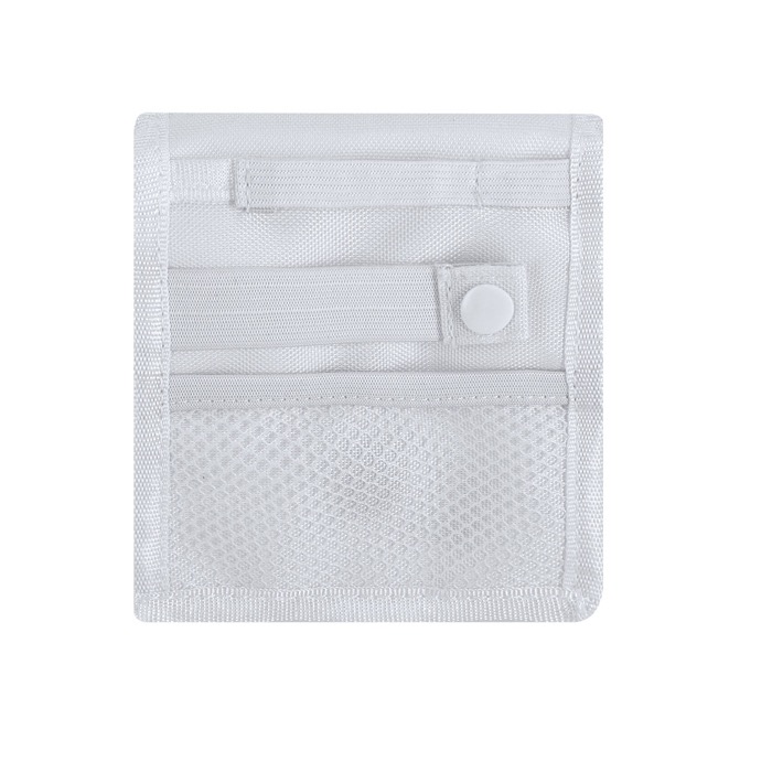 Organizador de bolso de poliéster 600D de plástico reciclado (rPET) com fecho de íman, pensado para levar o essencial de forma ordenada e acessível. Inclui vários compartimentos para separar pequenos essenciais e bolso de malha que permite ver o conteúdo com um mero olhar. As abas fixam-se através de uma correia com botão, o que permite dobrar e convertê-lo num formato compacto para bolso. Exibe etiqueta distintiva rPET. Recomendado para o pessoal sanitário, eventos e ações de marca em ambientes profissionais.