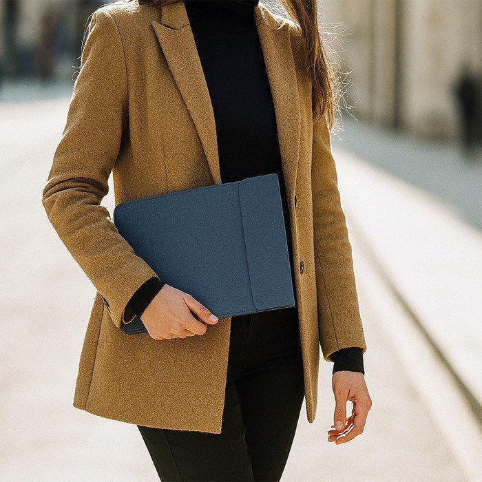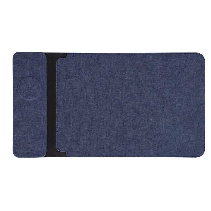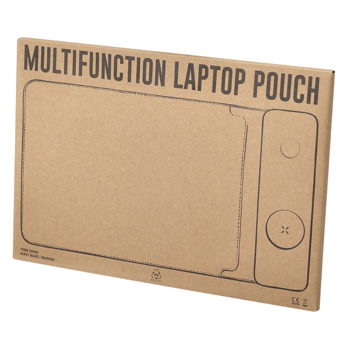Capa de computador portátil multifunções feita de PU reciclado e tecido rPET. Para computadores até 13 polegadas e equipada com sistema de carga sem fios multifunções. Inclui 2 carregadores: carregador sem fios magnético para smartwatch situado na parte superior e carregador sem fios magnético para telemóvel e/ou auriculares na parte inferior. Com sistema de fecho magnético.