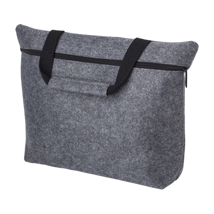 Porta-documentos de feltro rPET com compartimento para portátil (15″) com fecho de correr e pega curta.