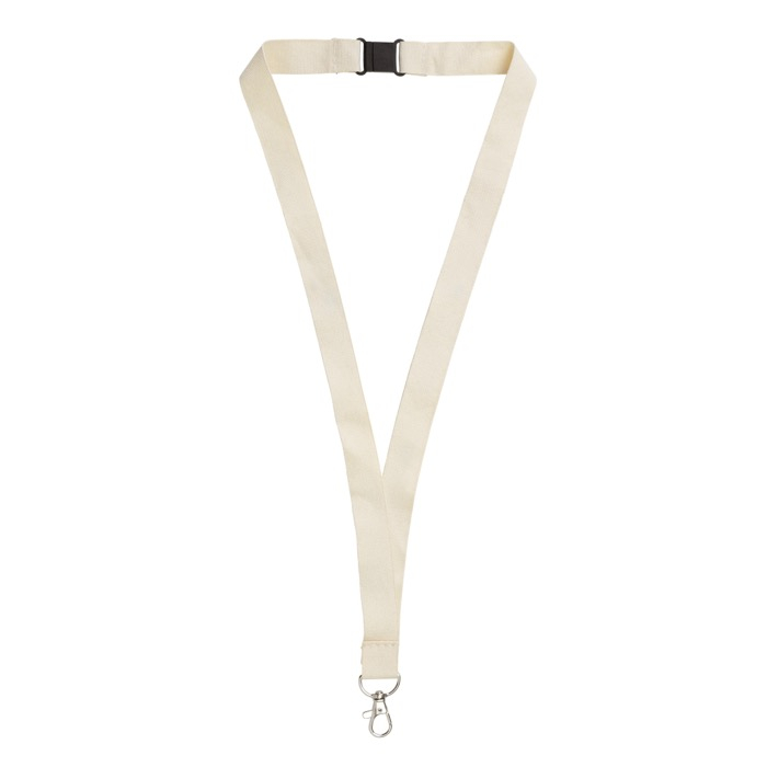 Lanyard de algodão orgânico com fivela de segurança e mosquetão