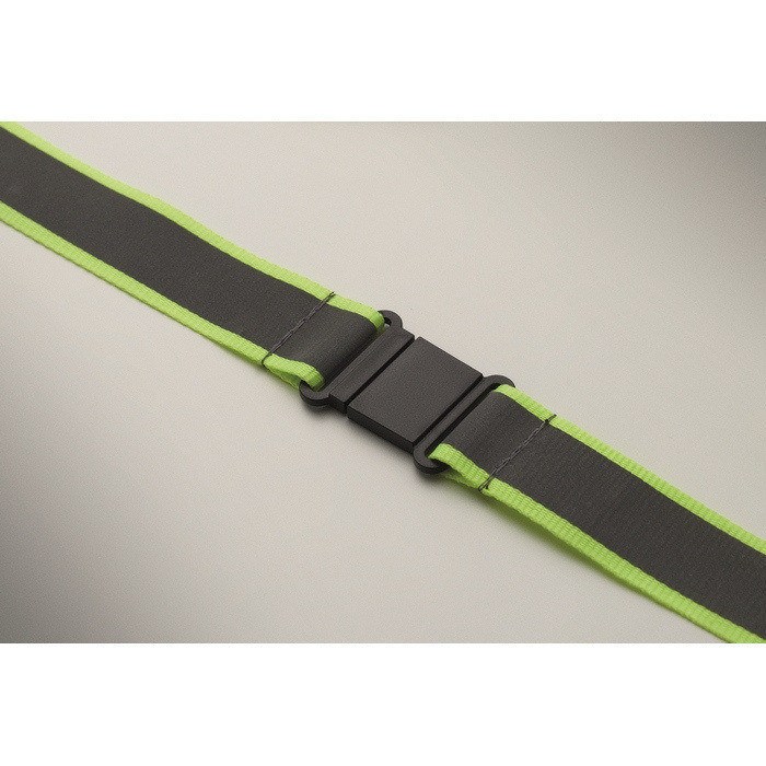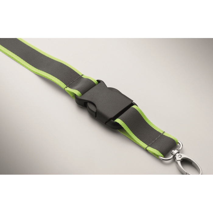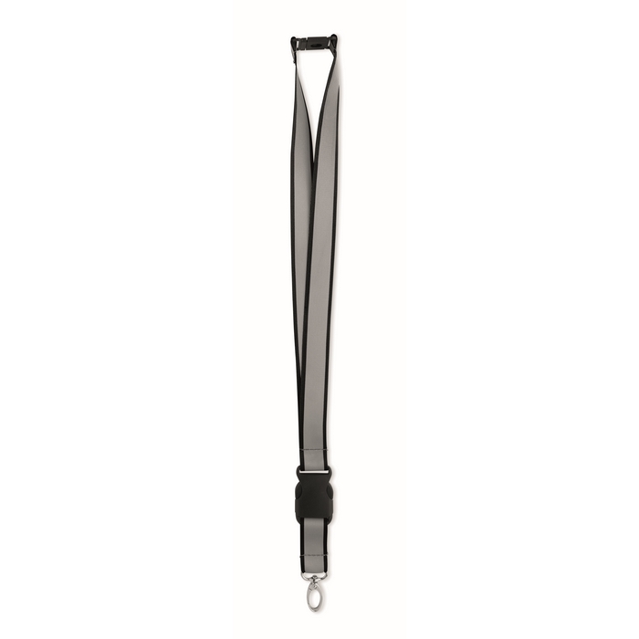 Lanyard refletor de rPET com fecho de segurança e grossura de 2,5 cm