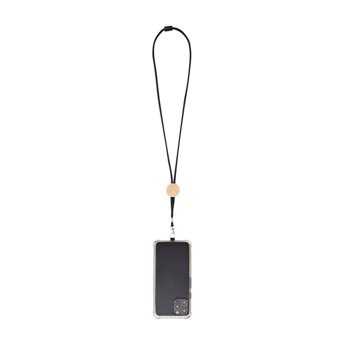 Lanyard para telemóvel com detalhe de bambu ecológico no centro