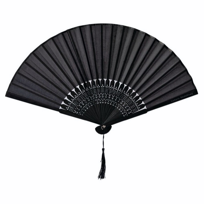 - Leque de bambu e poliéster com área adequada para impressão