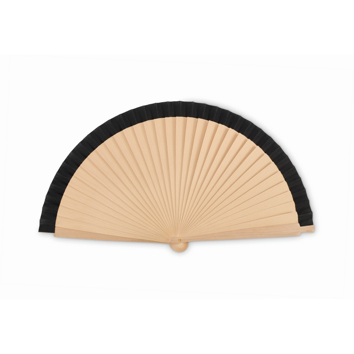 Leque de madeira Schima Superba e poliéster com 34 varetas, pensado para uso contínuo em eventos e sessões ao ar livre. A combinação da estrutura rígida e tecido flexível facilita a abertura e fecho suaves. Formato leve e manuseável para levar na carteira, credenciais ou pack de boas-vindas. Superfície personalizável para identificar a marca ou campanha nitidamente. Escolha prática para ações em feiras, congressos, hotelaria e merchandising corporativo.