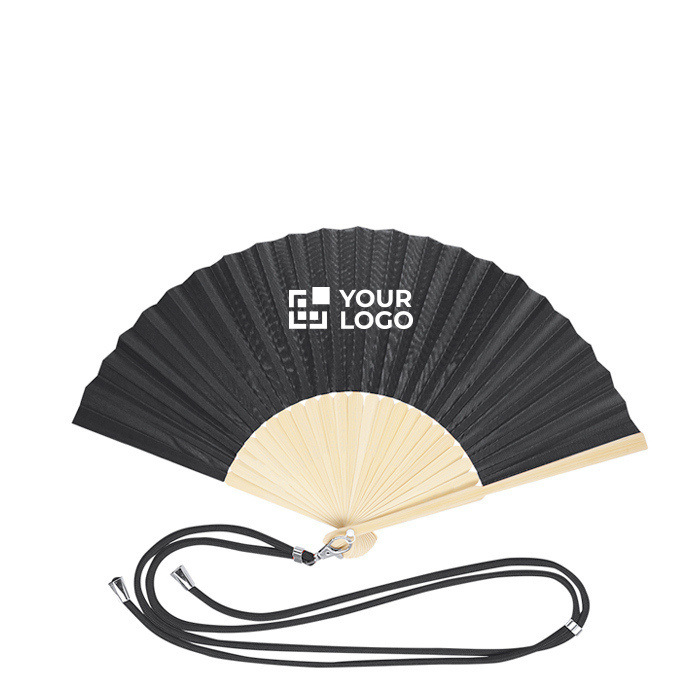 Leque de poliéster resistente com varetas de bambu flexível, pensado para levar e usar diariamente em dias de trabalho calorosos. Inclui cordão ajustável a condizer para o manter à mão e evitar perdas durante eventos ou deslocações. Superfície ampla para personalização com logo, útil em feiras, campanhas de verão ou ações de boas-vindas no escritório.