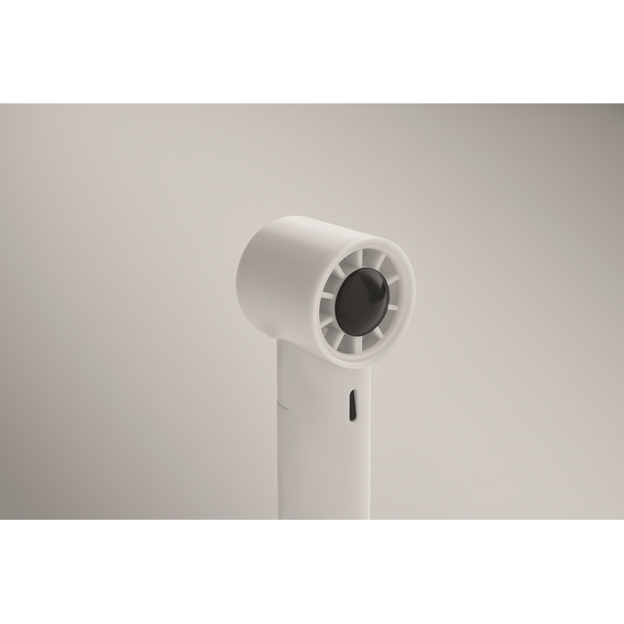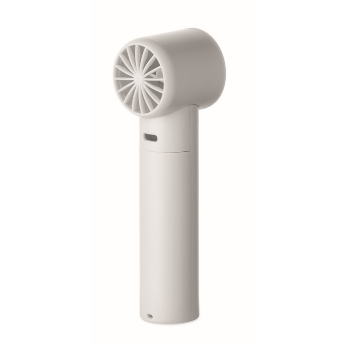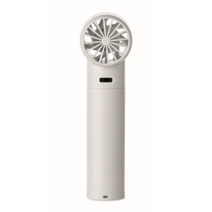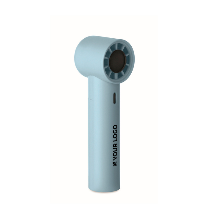 Ventoinha de mão mini de ABS uso rápido e simples. Dispõe de 5 modos de velocidade para se adaptar a diferentes necessidades: desde uma brisa suave até a um fluxo mais intenso. Inclui bateria de lítio recarregável e substituível de 2600 mAh, desenhada para uso frequente e de fácil manutenção. Formato compacto para levar na mochila, carteira ou kit de boas-vindas. Adequada para eventos, feiras e ações de merchandising corporativo.