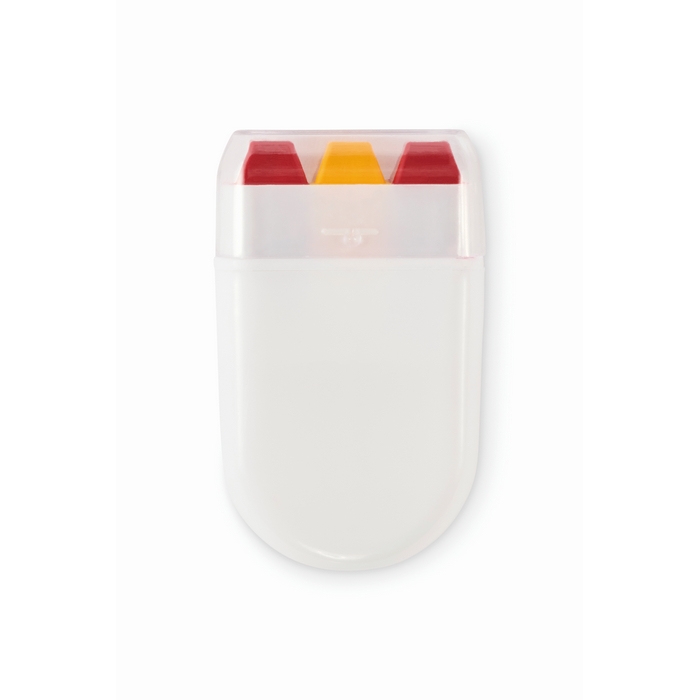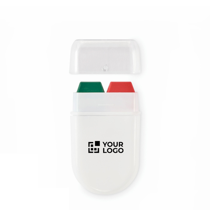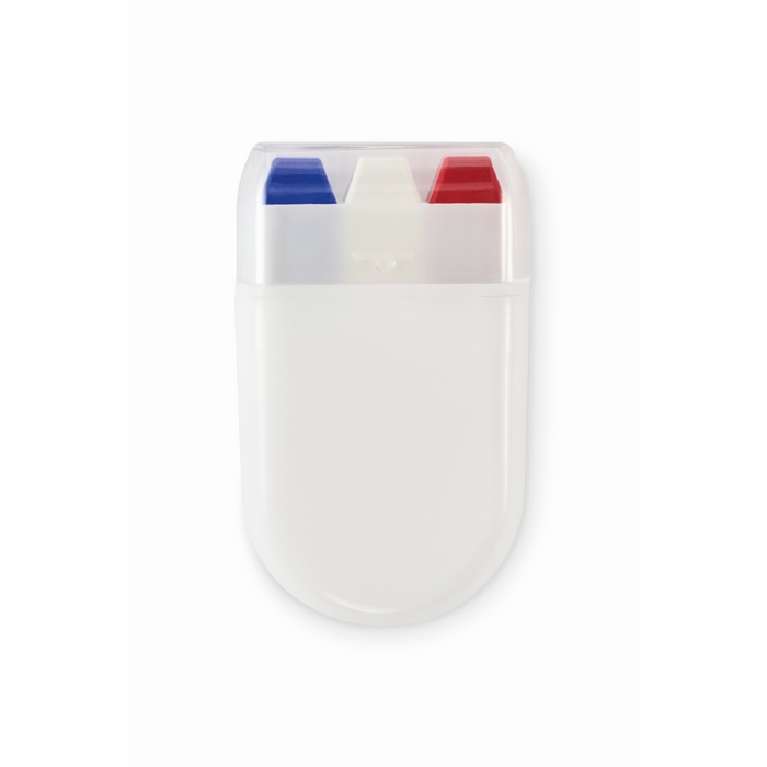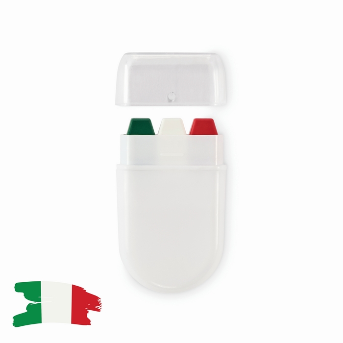 Barra de pintura corporal com cores de bandeiras nacionais e composição de pintura de cera. Entregue em estojo de plástico. Formato compacto e limpo para levar no bolso, mochila ou kit de evento. A estrutura protege a barra e facilita a aplicação rápida na pele com fecho via tampa para a guardar depois de utilizar. Opção prática para ações pontuais no exterior ou interior. Recomendada para animação de eventos, feiras, promoções desportivas ou campanhas temáticas de marca.