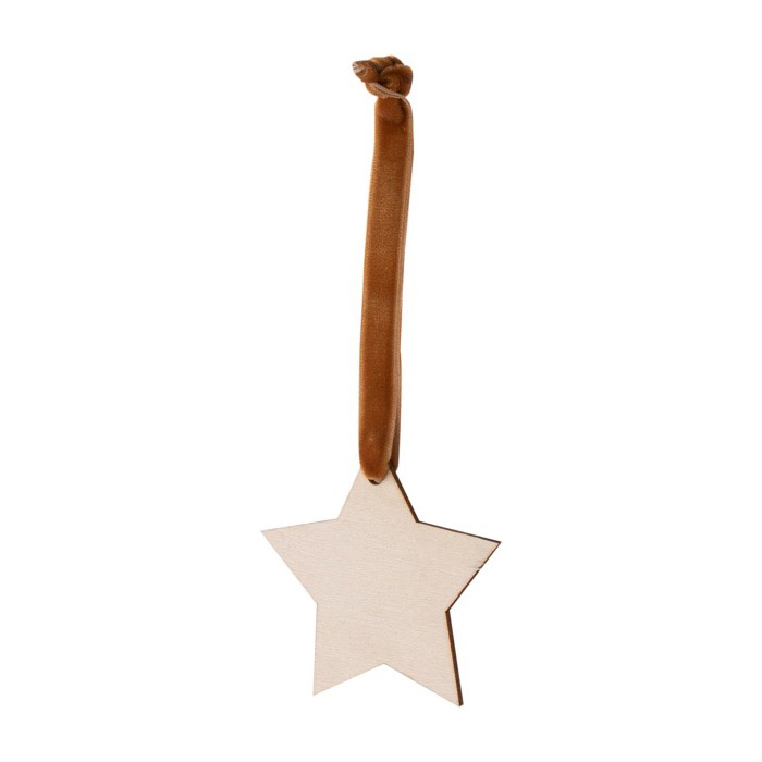 Celebre as festas no escritório e dê um toque único com este enfeite natalício personalizável suspenso de madeira. Possui uma fita de veludo decorativa.