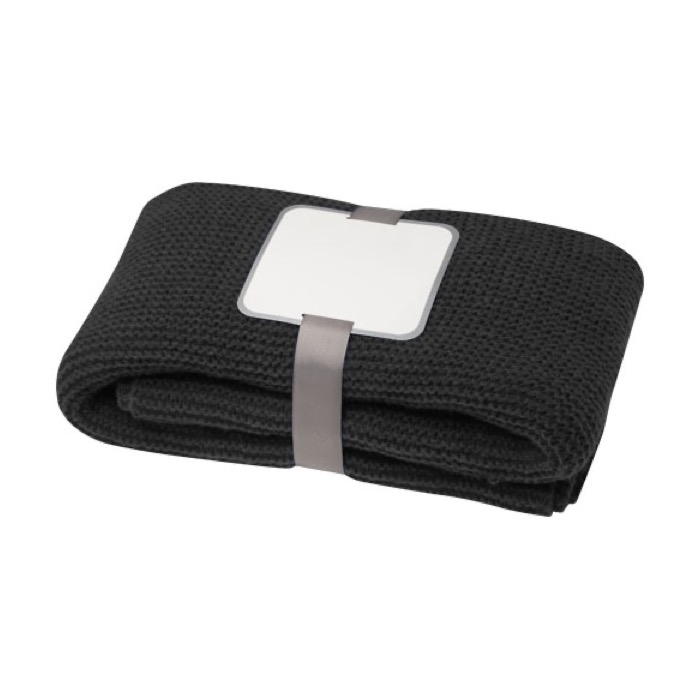Manta de malha de poliéster reciclado com etiqueta e faixa