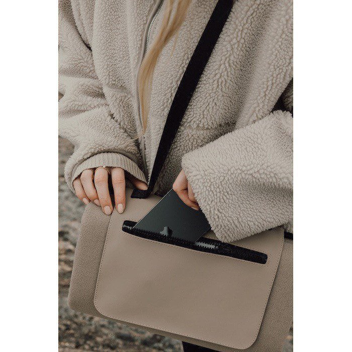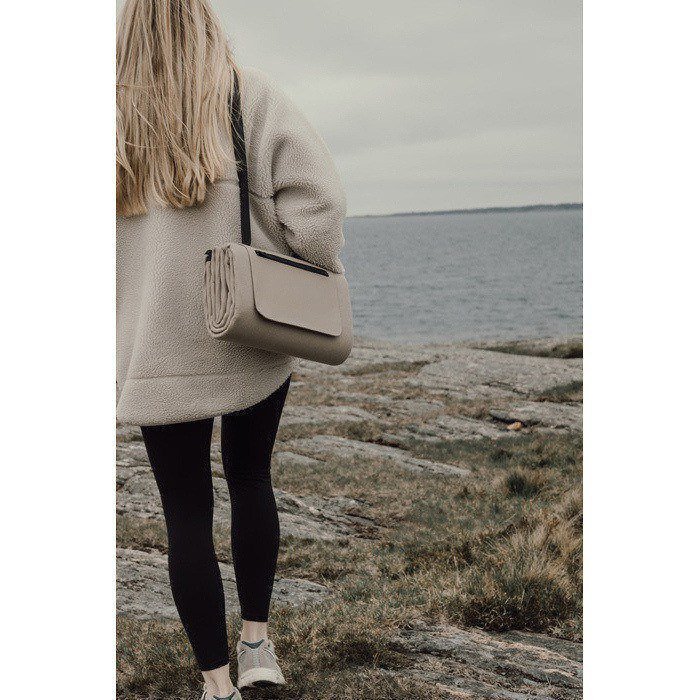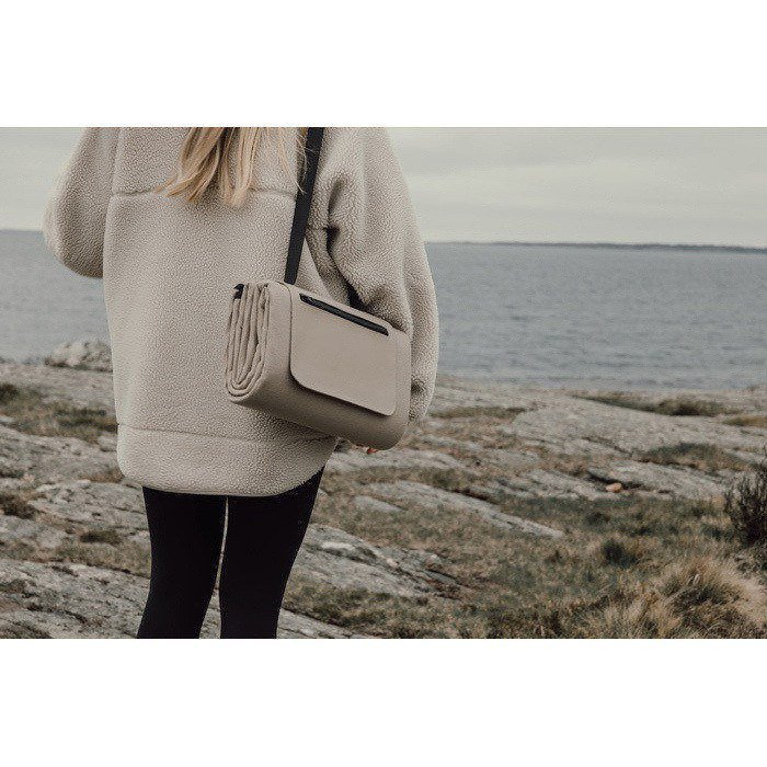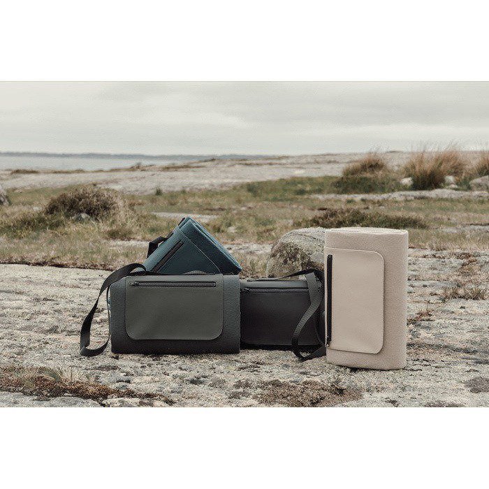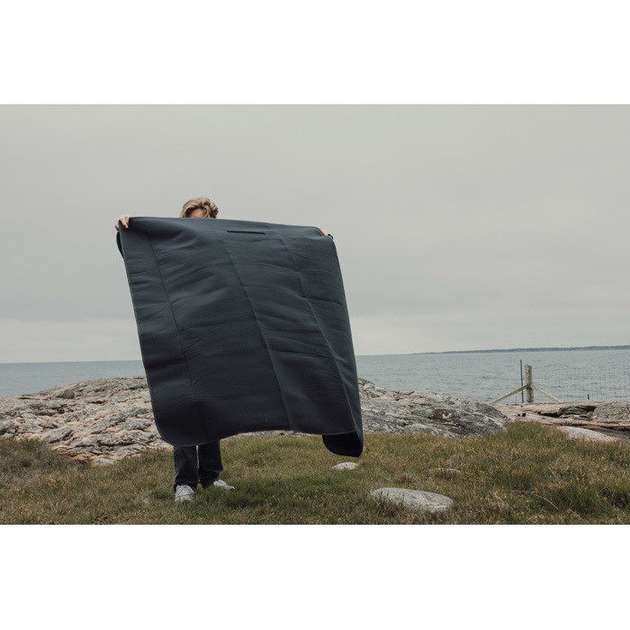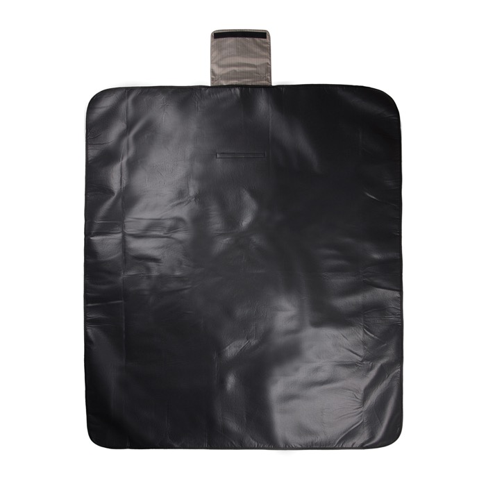 Manta de piquenique com superfície em velo suave para maior conforto e reverso em PEVA impermeável que protege contra a humidade e o frio. Incorpora uma asa longa para um transporte fácil e cómodo, além de um bolso frontal com fecho para guardar chaves, telemóvel ou outros objectos essenciais. Tamanho: 150 × 130 cm. Fabricada em poliéster reciclado e certificada por RCS (Recycled Claim Standard), que garante a rastreabilidade dos materiais reciclados em toda a cadeia de fornecimento. Conteúdo reciclado total: 47 % com base no peso do produto.