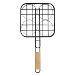 Grelha com pega confortável de madeira especial para hambúrgueres