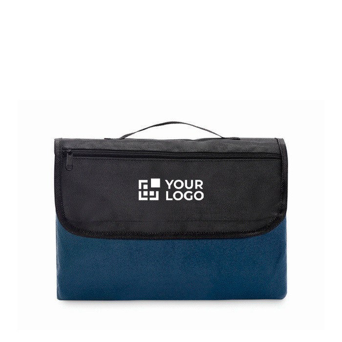 Manta de piquenique dobrável de forro polar rPET de 150 g/m2, com mescla de 68% poliéster reciclado e 32% poliéster normal. Inclui verso de PEVA revestido e hidrorrepelente para isolar do chão húmido. A aba frontal dispõe de um bolso com fecho de correr para guardar chaves ou telemóvel e a pega facilita o transporte em eventos. Opção prática para kits de boas-vindas, campanhas sazonais ou ações de marca ao ar livre.