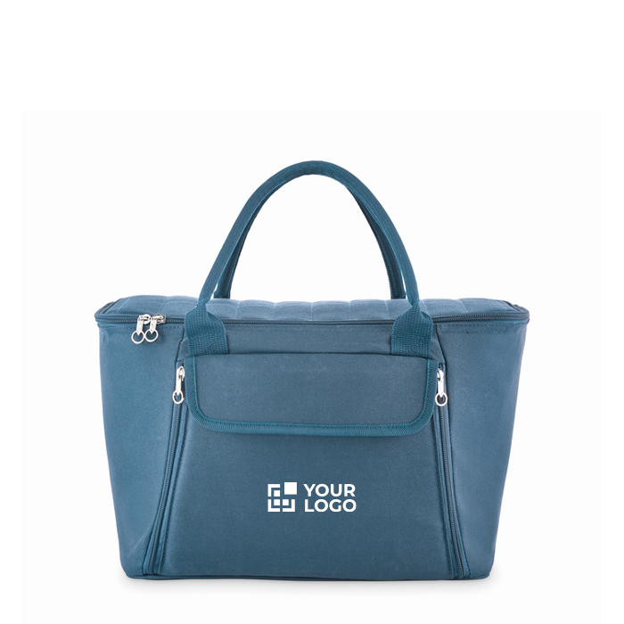Saco térmico de piquenique de poliéster 600D rPET concebido para 2 pessoas. Inclui bolso frontal com fecho de correr para organizar o conteúdo e facilitar o acesso em movimento. Contém: talheres de aço inoxidável, 2 pratos de PS, 2 copos de PS e 2 guardanapos de algodão, tudo pronto para uso imediato. Formato prático para levar no carro ou a pé. Adequado para packs de boas-vindas, brindes para equipas ou campanhas sazonais.