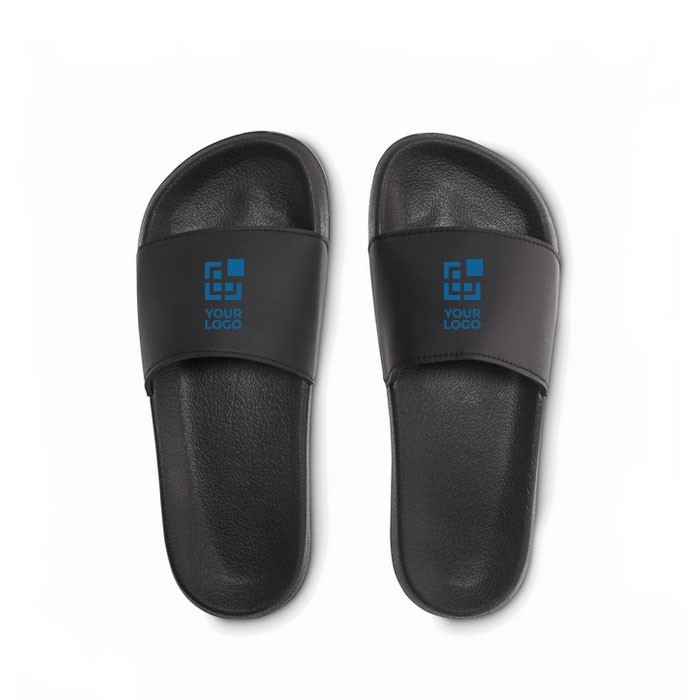 Chinelos promocionais de piscina antideslizantes. Uma forma simples de manter a sua marca visível em ambientes de verão ou de lazer. Feitos de EVA.