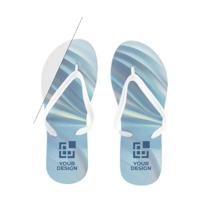 Chinelos tipo havaianas prontas para sublimação na sola. Tiras de PVC e camada superior de poliéster. Um brinde veranil apenas disponível com impressão incluída.