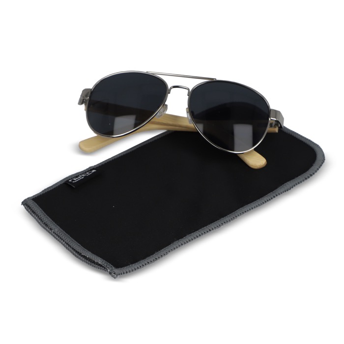 Óculos de sol estilo aviador com hastes de bambu e bolsa Trendy Glass
