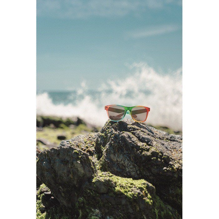 Óculos de sol com armação de policarbonato de acabamento multicolorido tipo arco-íris e proteção UV400. Design leve para uso contínuo no exterior e ajuste cómodo na maioria dos tamanhos. As lentes ajudam a diminuir o encandeamento em ambientes de alta luminosidade, como a praia, eventos ao ar livre ou deslocações. A aparência colorida facilita a identificação em ações de grupo e dá-lhe um toque distinto em campanhas. Opção prática para oferecer em feiras, promoções de verão ou eventos ao ar livre.