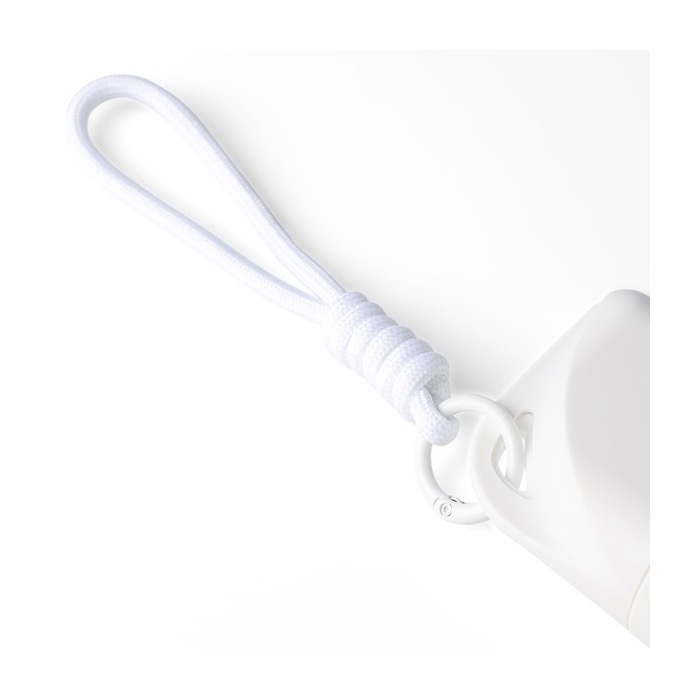 - Tira de pulso e mosquetão metálico para transporte rápido