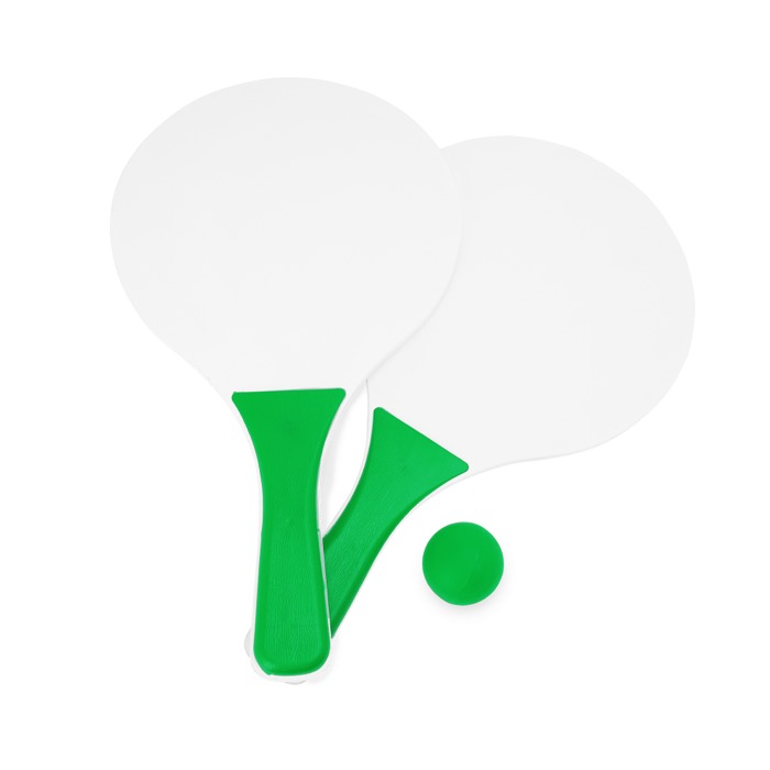Um brinde que combina diversão e distinção. Este conjunto de ténis de praia, composto por duas raquetas de madeira MDF e uma bola, é o brinde de verão por excelência para quem desfruta do sol e do desporto. O design é ideal para fortalecer relações comerciais em eventos promocionais, evidenciando-se pela qualidade e estilo. A madeira MDF proporciona resistência e leveza exímias, assegurando um jogo fluido e dinâmico. Não se limita a ser um artigo recreativo, é também um símbolo de apreço e vínculo entre empresas e clientes, transportando a experiência do destinatário para um nível superior. Entrega rápida disponível.