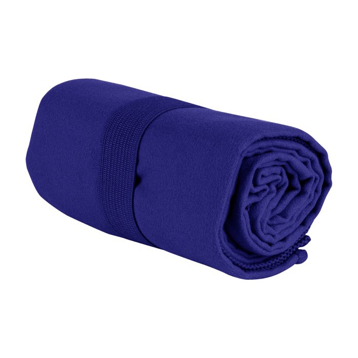 Toalha absorvente de microfibra rpet com elástico para fácil dobragem.