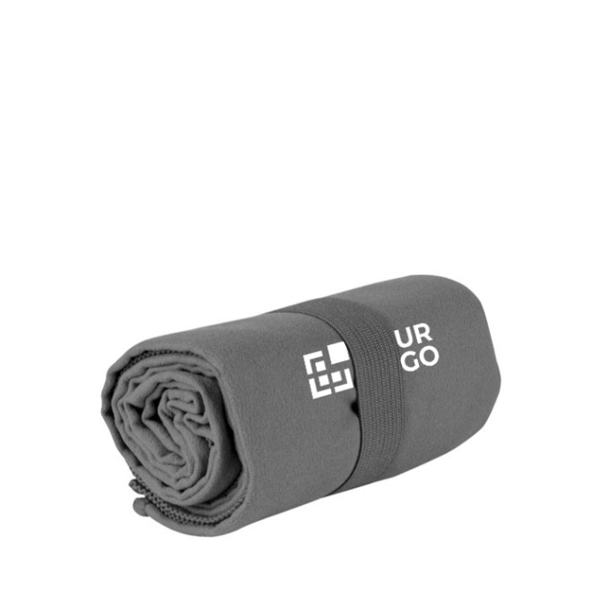 Seja sustentável com esta toalha com logo de microfibra RPET absorvente e elástica, perfeita para desporto ou viagem; fácil de dobrar, sempre pronta a usar.