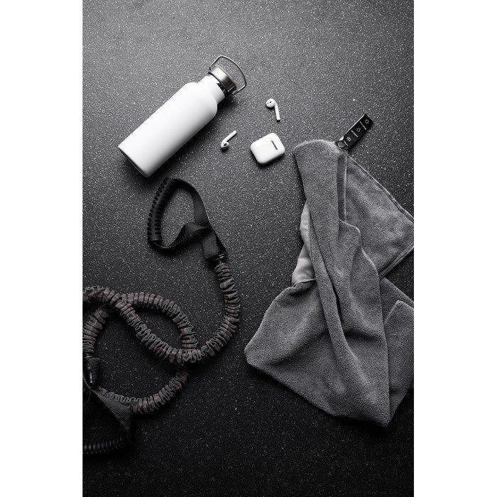 Toalha de desporto em microfibra feita a partir de garrafas PET recicladas. O seu toque único faz com que esta toalha absorva mais água e se seque três vezes mais rápido do que uma toalha tradicional. Ideal para atividades ao ar livre e desportos. Leve e compacta, a toalha tem um tamanho ideal para viajar ou ir ao ginásio. Fabricado com 50% de materiais reciclados certificados GRS (Global Recycled Standard), com certificação GRS que garante cadeias de fornecimento de materiais reciclados totalmente certificadas. O conteúdo reciclado total baseia-se no peso total do produto.