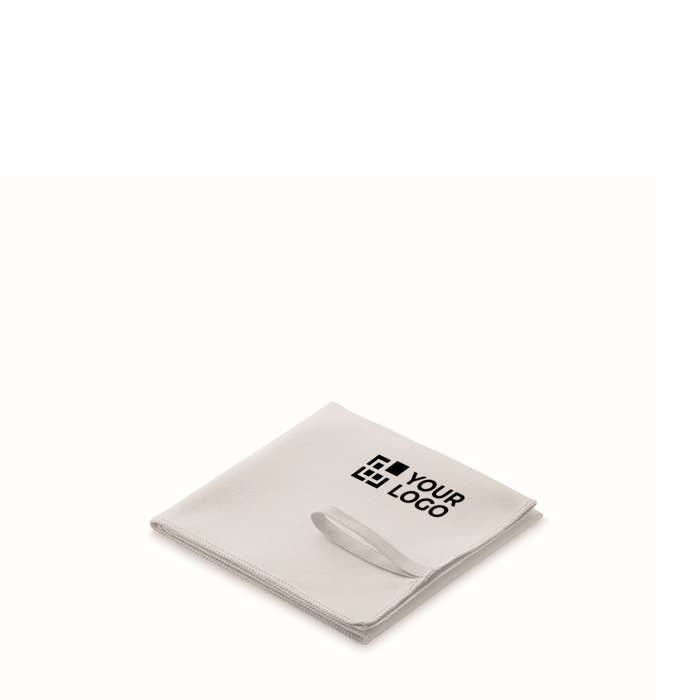 Toalha de microfibra de mescla de 90% poliéster e 10% poliamida, desenhada para uso prático e frequente. Inclui pega elástica para a transportar ou pendurar com facilidade e mantê-la arrumada. O tecido é leve e de secagem rápida, o que ajuda a reduzir a humidade depois do uso. Com um tamanho de 30 x 50 cm, encaixa bem em sacos desportivos, nécessaires ou kits de viagem. Recomendada para ações de boas-vindas, eventos desportivos ou packs corporativos.
