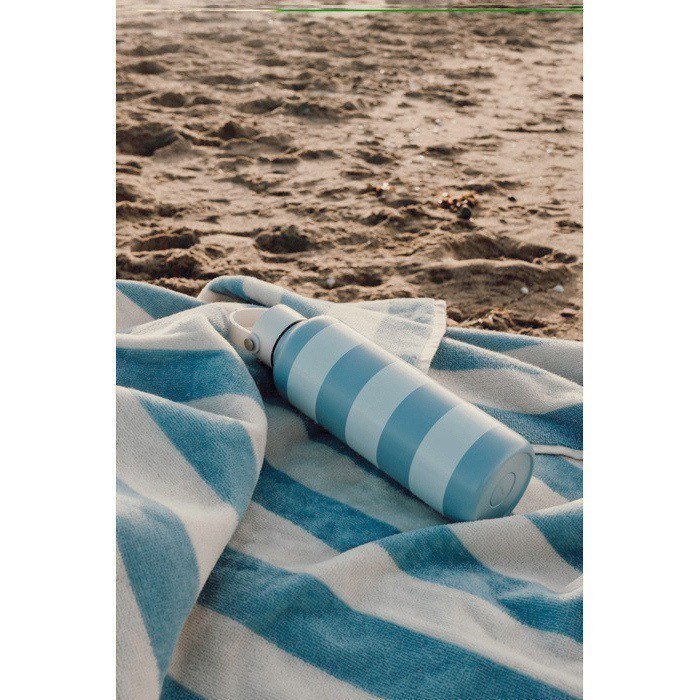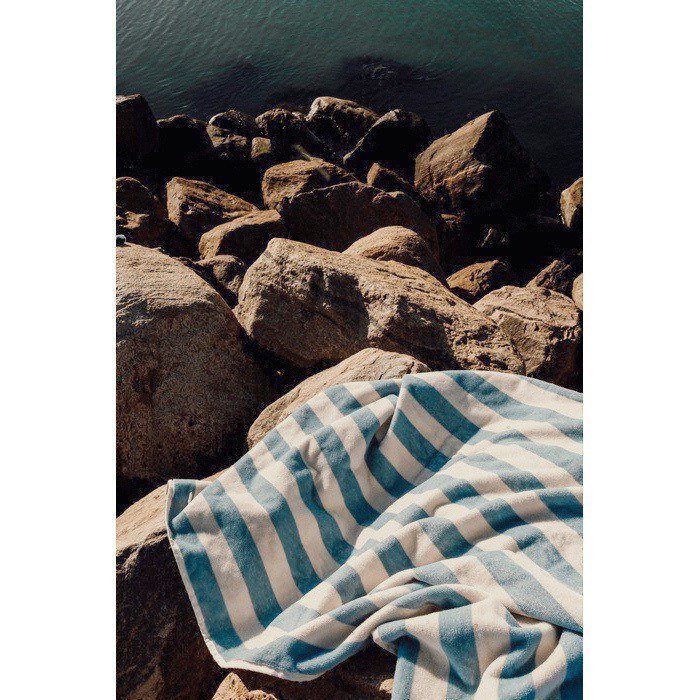 Toalha de praia de algodão reciclado com certificação GRS (Global Recycled Standard), tecida com estampado clássico de listras bicoloridas e toque macio. A gramagem de 450 g/m² dá-lhe boa absorção e sensação consistente de qualidade em cada uso. Tamanho de 80 x 160 cm, pensada para espreguiçadeiras, barcos ou zonas de piscina sem ocupar muito espaço. Fabricada responsavelmente em Portugal. Uma opção fiável para o dia a dia. Útil como brinde empresarial em eventos de verão ou ações de marca.