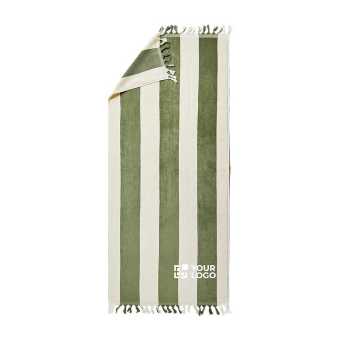 Na sua próxima campanha publicitária de verão conte com este merchandising personalizado. Esta toalha possui borlas e é feita de algodão de cultivo eco.