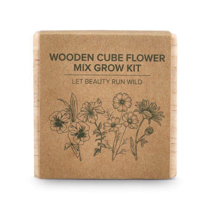 Kit de semear com vasos e substrato de fibra de coco para iniciar um pequeno cultivo de flores em poucos passos. Conta com substrato prensado de fibra de coco e mescla de sementes de flores silvestres como cosmos, coreopsis, pensamentos e campainhas. Preparação simples e limpa: hidrate o substrato, semeie e regue regularmente. Prático para secretárias, receções ou zonas comuns. Opção adequada para ações de branding em feiras, onboarding ou campanhas sazonais.