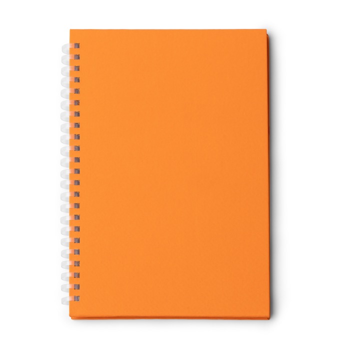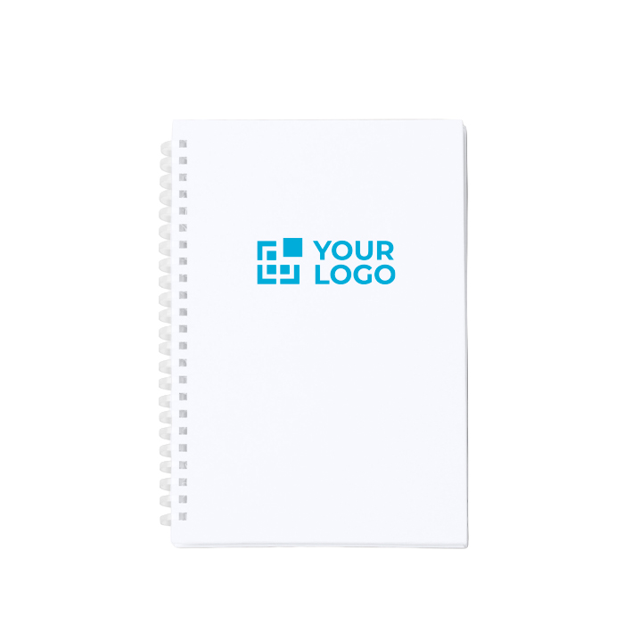 Bloco de notas em formato A5 em plástico reciclado, com argolas flexíveis que facilitam virar as páginas e o uso diário em reuniões. Inclui capa rígida do mesmo material para proteger o conteúdo durante o transporte, na mochila ou na secretária. O interior inclui folhas quadriculadas, pensadas para tirar apontamentos, planear tarefas ou fazer esquemas de forma organizada. Um formato prático para equipas comerciais, formações internas ou ações de comunicação em eventos com personalização empresarial.