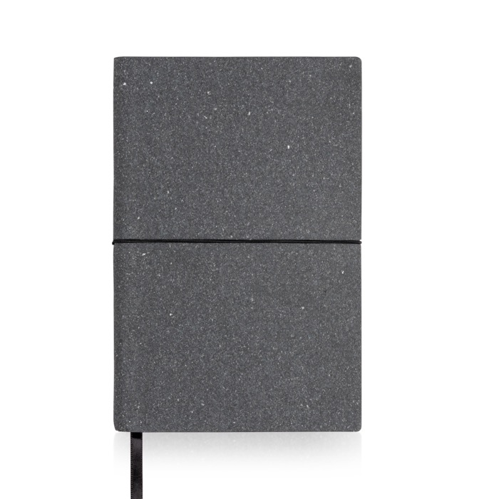 Ofereça um bloco de notas A5 com capa de pele reciclada, elástico tubular horizontal e 160 páginas pontilhadas. Qualidade e estilo num design exclusivo.